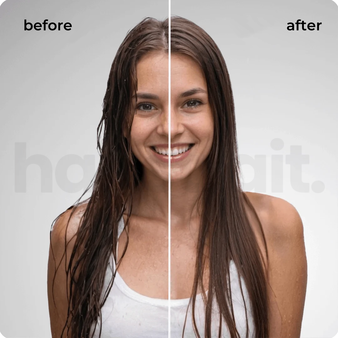 Usually just 5–10 minutes. No blow dryer, no flat iron – Hairstrait dries and straightens your hair at the same time. It easily saves you 15+ minutes every morning.
