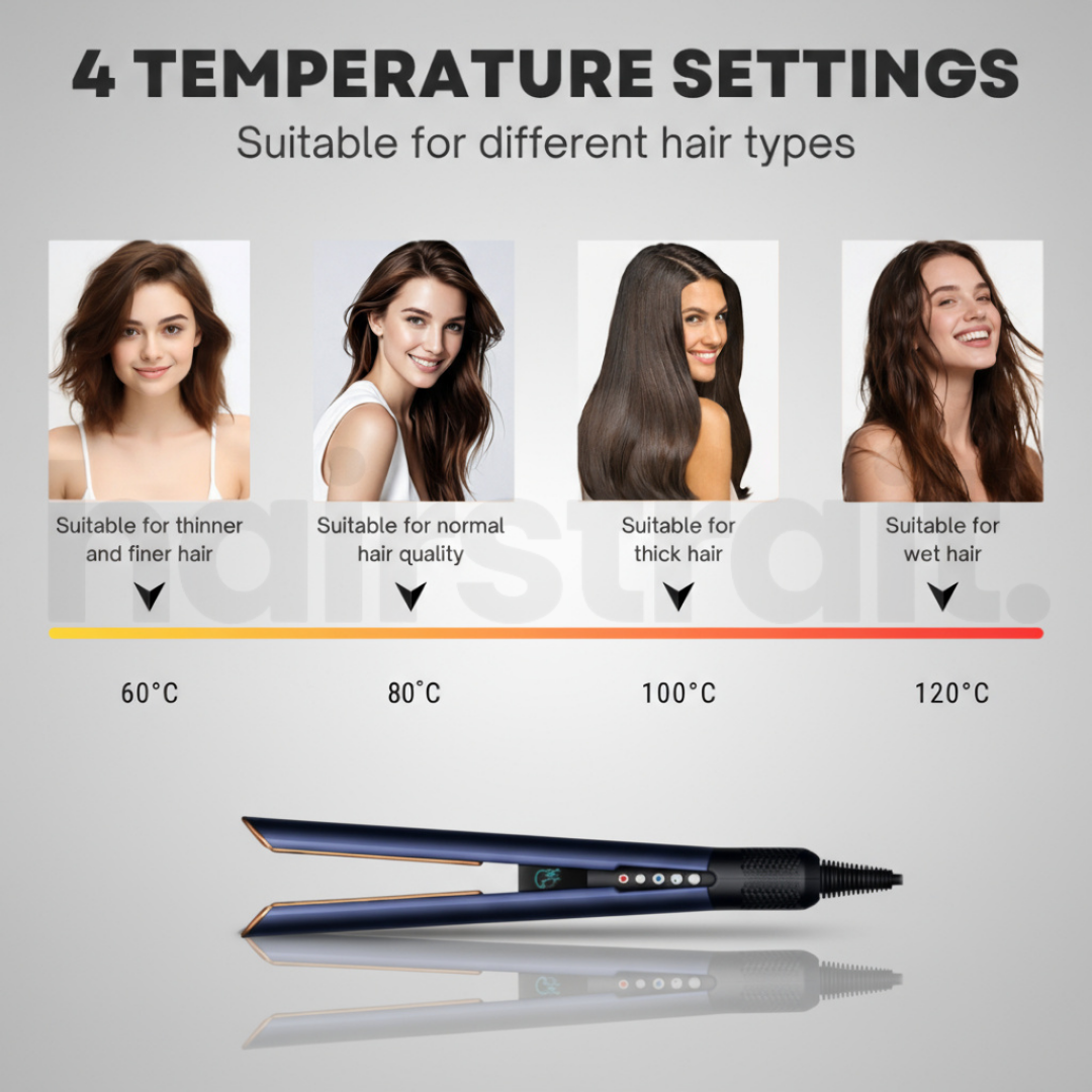 Absolutely! Whether your hair is fine, thick, curly, or frizzy – Hairstrait adapts to it. You can choose from three heat settings based on what your hair needs.